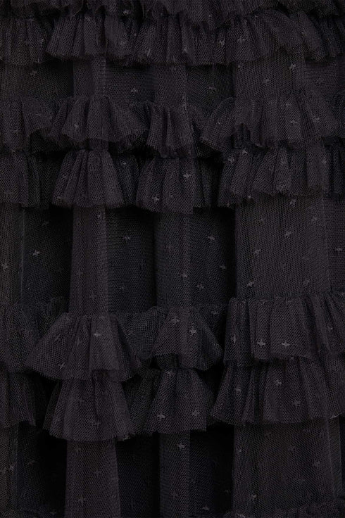 - Kisses tulle decorated with layers of tulle ruffles