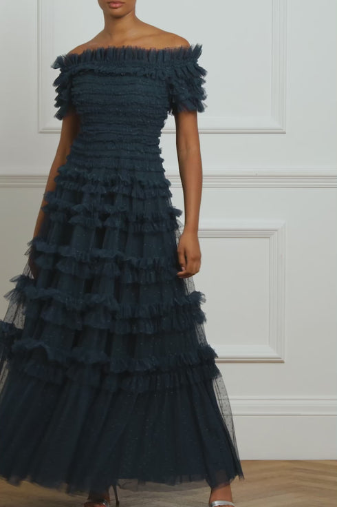 Lisette Ruffle Off Shoulder Gown