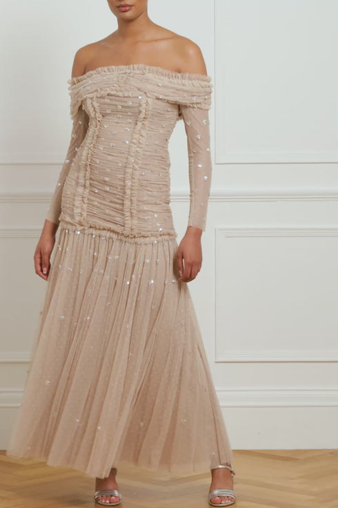 Love Heart Rouched Off-Shoulder Gown