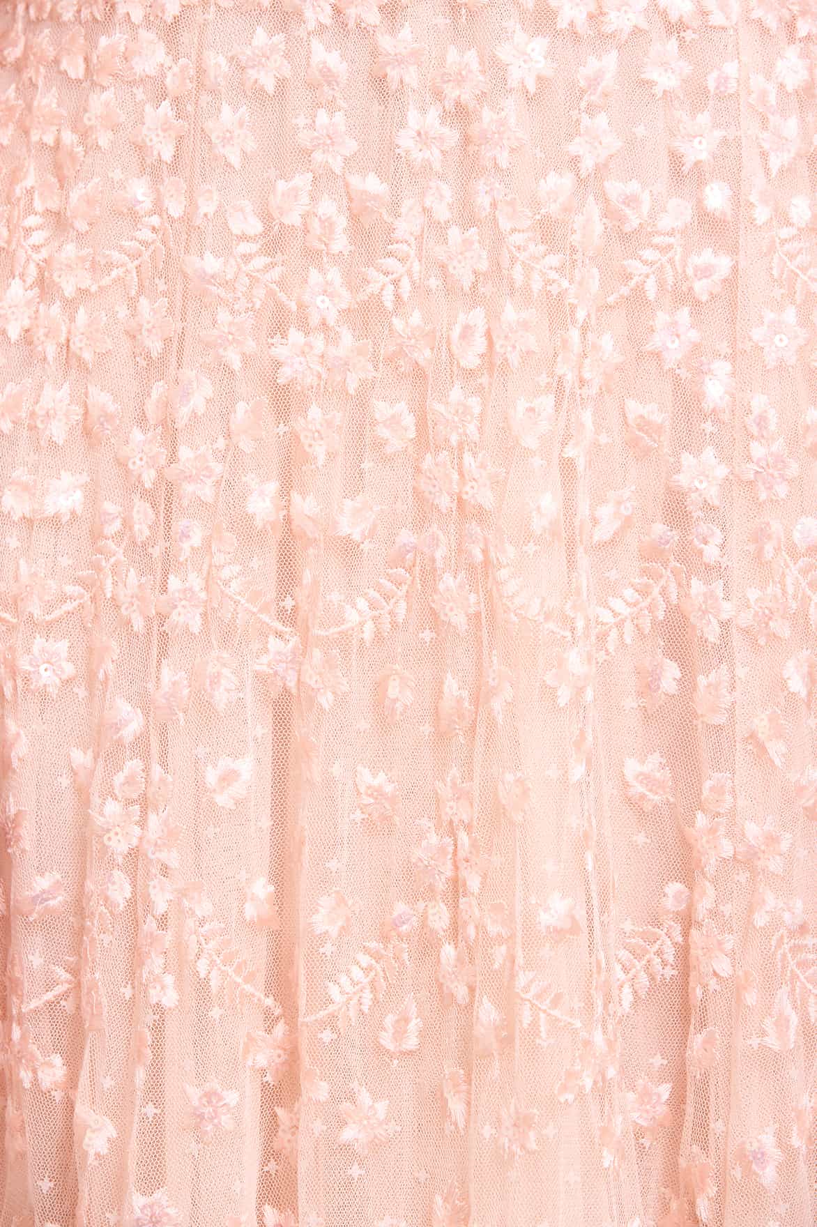 - Kisses tulle decorated with sequins and floral embroidery