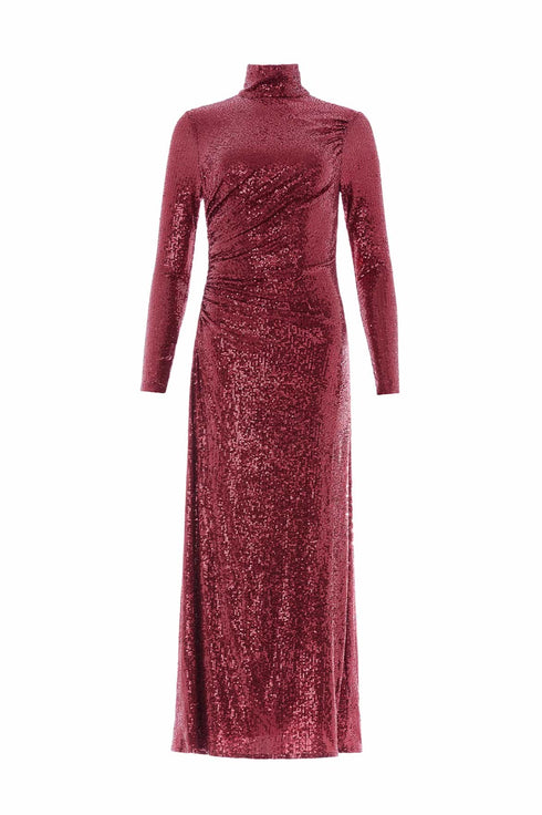 NEW SEASON. The Malia Turtleneck Ankle Gown in Winterberry. Rich in tone and inspired by celestial devotion, this gown is a modern interpretation of romance. With its high neckline and long sleeves, the silhouette feels statuesque, while the fluid skirt moves like starlight in motion. The winterberry shade deepens the gown’s intensity, embodying the passionate spirit of the Bright Star collection.