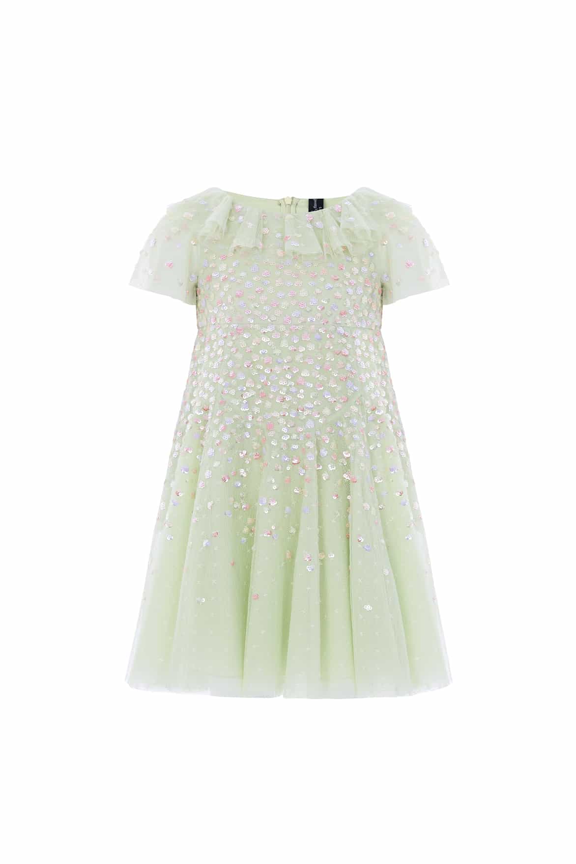 NEW SEASON. The Candy Dot Kids Dress in Peppermint/Multi. This joyful kids dress features a relaxed silhouette and a softly layered full skirt designed for twirling. Finished with playful dot detailing inspired by scattered garden petals, it feels light and luxurious.
