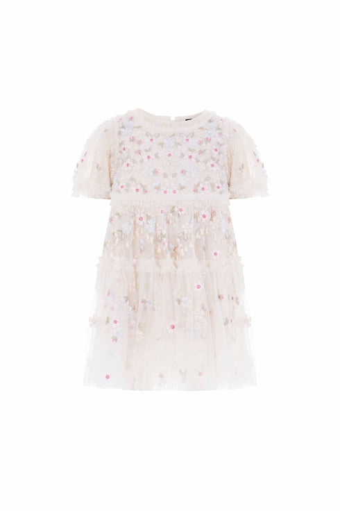 NEW SEASON. The Garland Ribbon Baby Dress in Cream/Pastel. A charming design with ribbon-inspired embroidery on layers of soft tulle. With gentle gathers and a full skirt, it’s crafted for little ones to move with ease. This piece complements the Garland Ribbon Ankle Gown from the womenswear line for a coordinated moment.