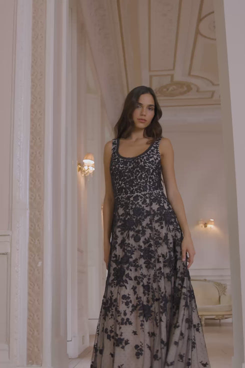- Kisses tulle decorated with floral embroidery