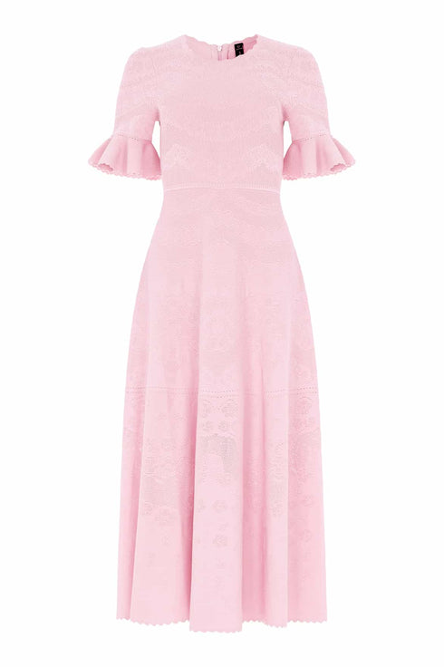 NEW SEASON. The Scallop Lace Pointelle Knit Gown in Seashell. A graceful knit design with a scalloped neckline and soft lace detailing. Combining delicate craftsmanship and fluid drape, it offers a modern twist on timeless romance.