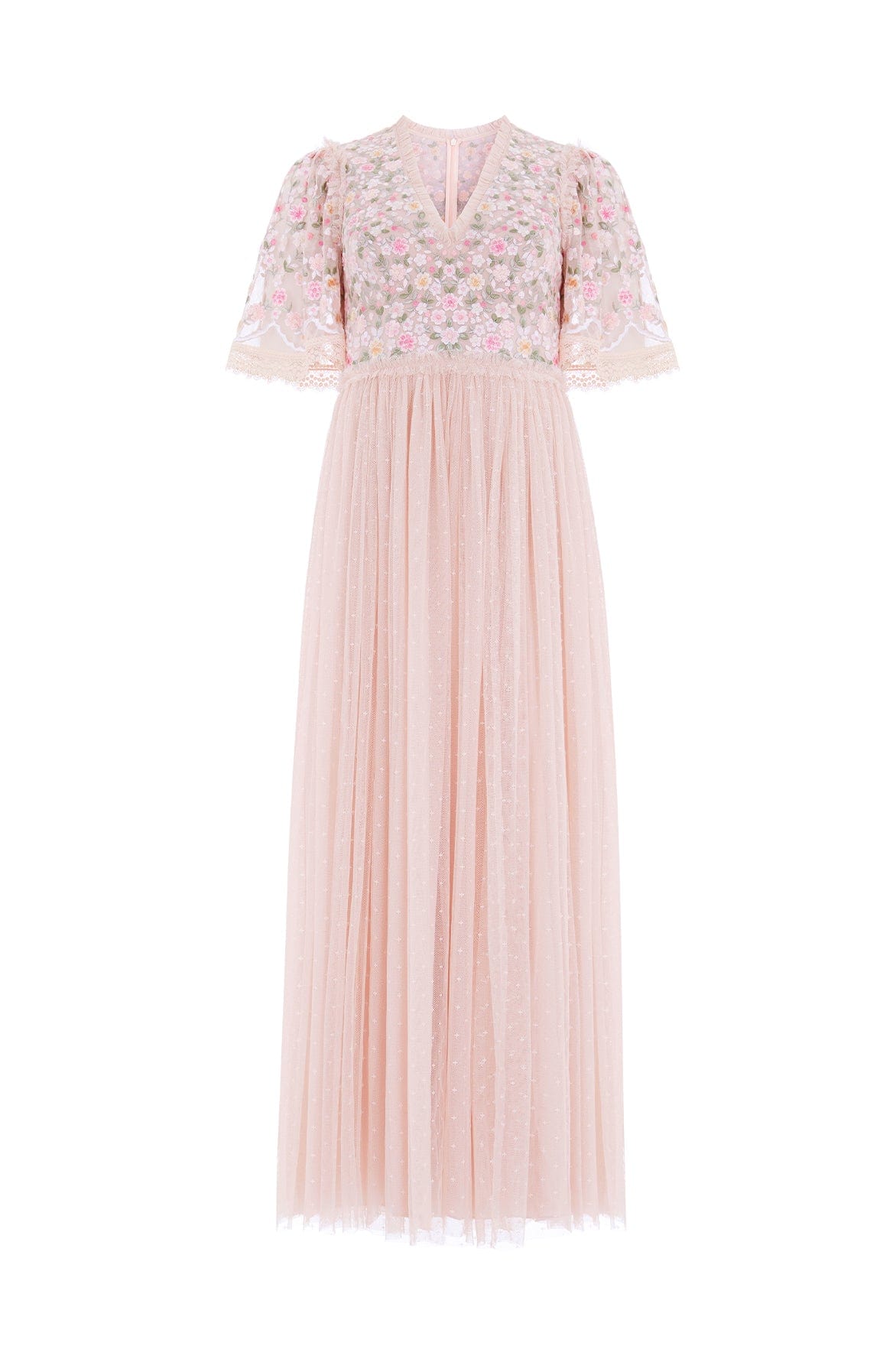 - Kisses tulle decorated with floral embroidery