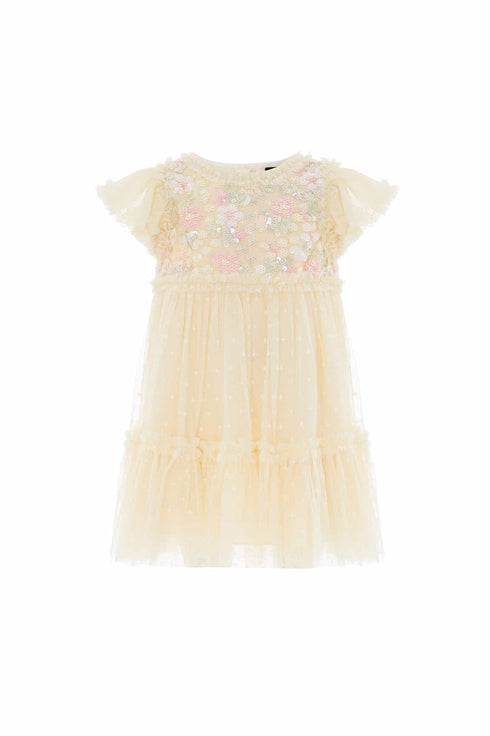 NEW SEASON. The Confetti Bodice Baby Dress in Lemon Sorbet/Multi. Sparkles with delicate floral sequins on soft tulle. With a lightly flared skirt and subtle shimmer, this dress captures whimsical in miniature form.