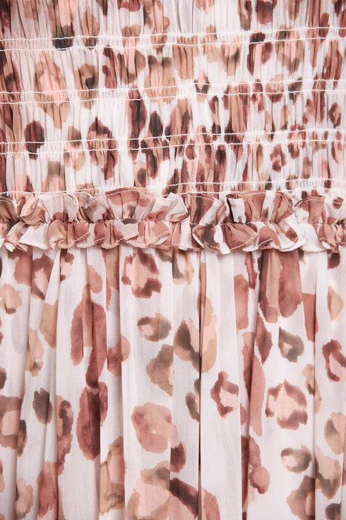 Leopard Chiffon Smocked Cami Ankle Gown