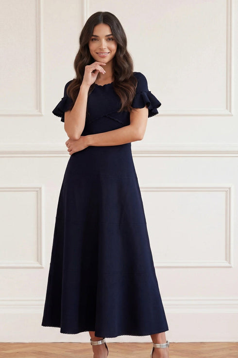 - Knitted stretch viscose dress with scallop and pointelle details