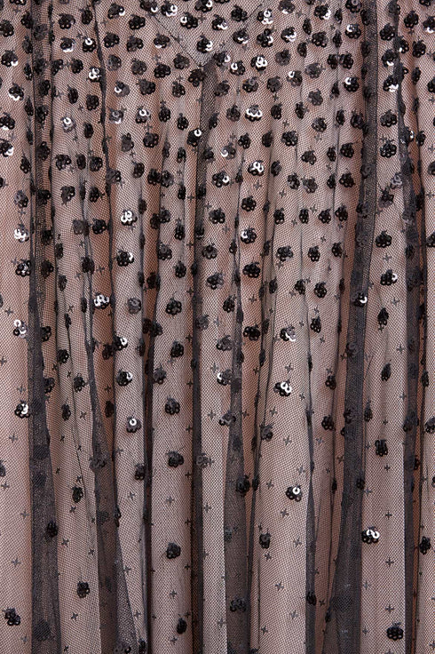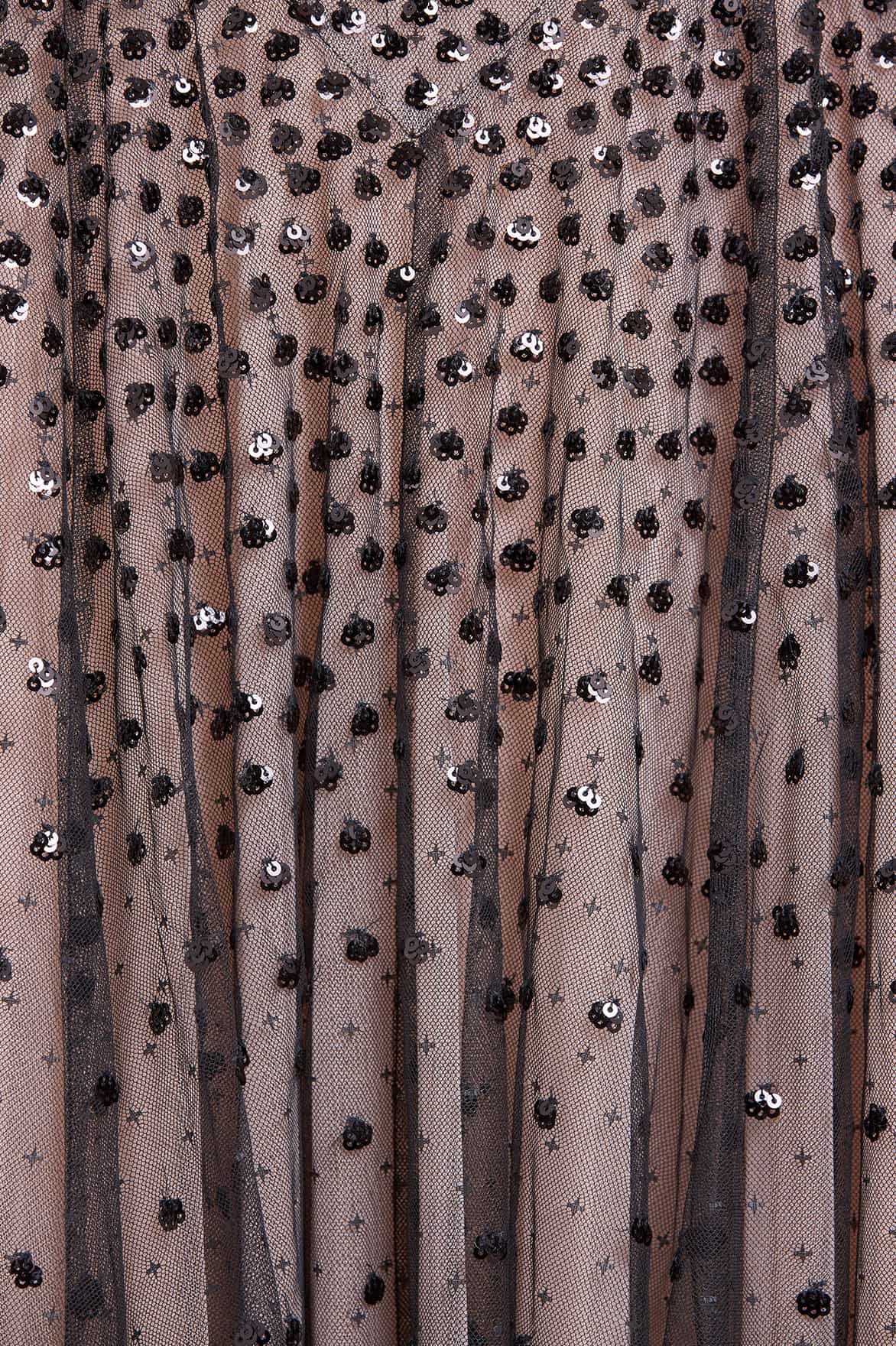 - Kisses tulle decorated with tonal sequins.