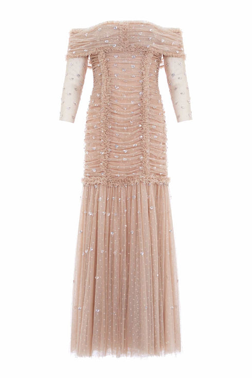 Love Heart Rouched Off-Shoulder Gown