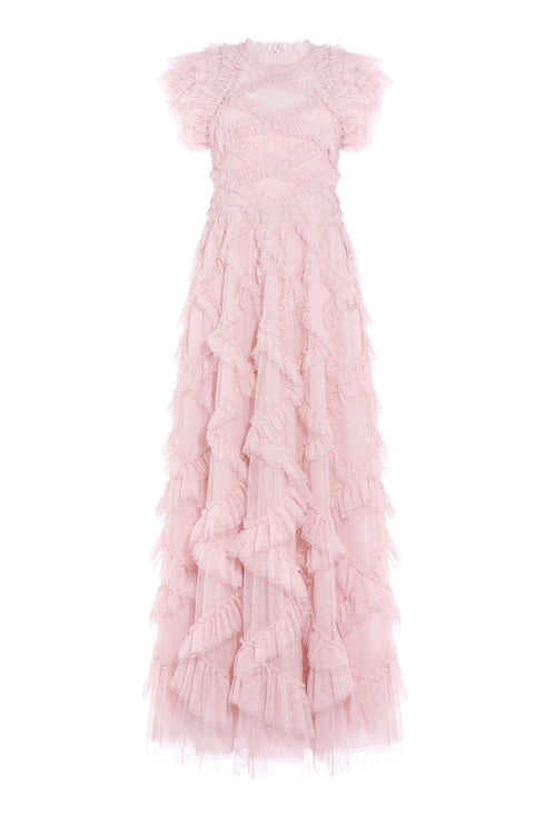 NEEDLE & THREAD EXCLUSIVE. The Genevieve Rose Gown in Ballerina Pink. This statement gown is inspired by 1930s Hollywood glamour. Beautifully designed with diamond tulle details and trims. Crafted with multiple layers of ruffled, frothy tulle sculpted for dramatic effect. Make the ultimate style statement this season.