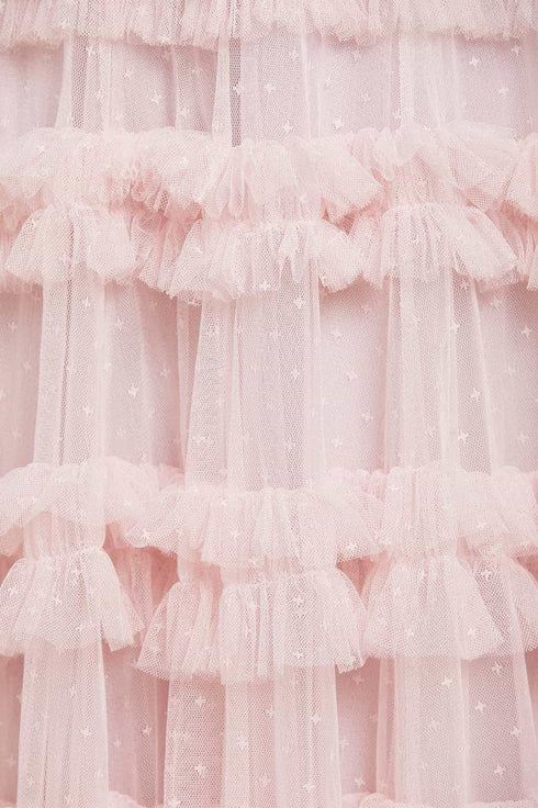 - Kisses tulle decorated with layers of tulle ruffles