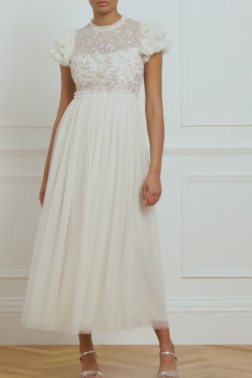 Dahlia Ditsy Bodice Round Neck Ankle Gown
