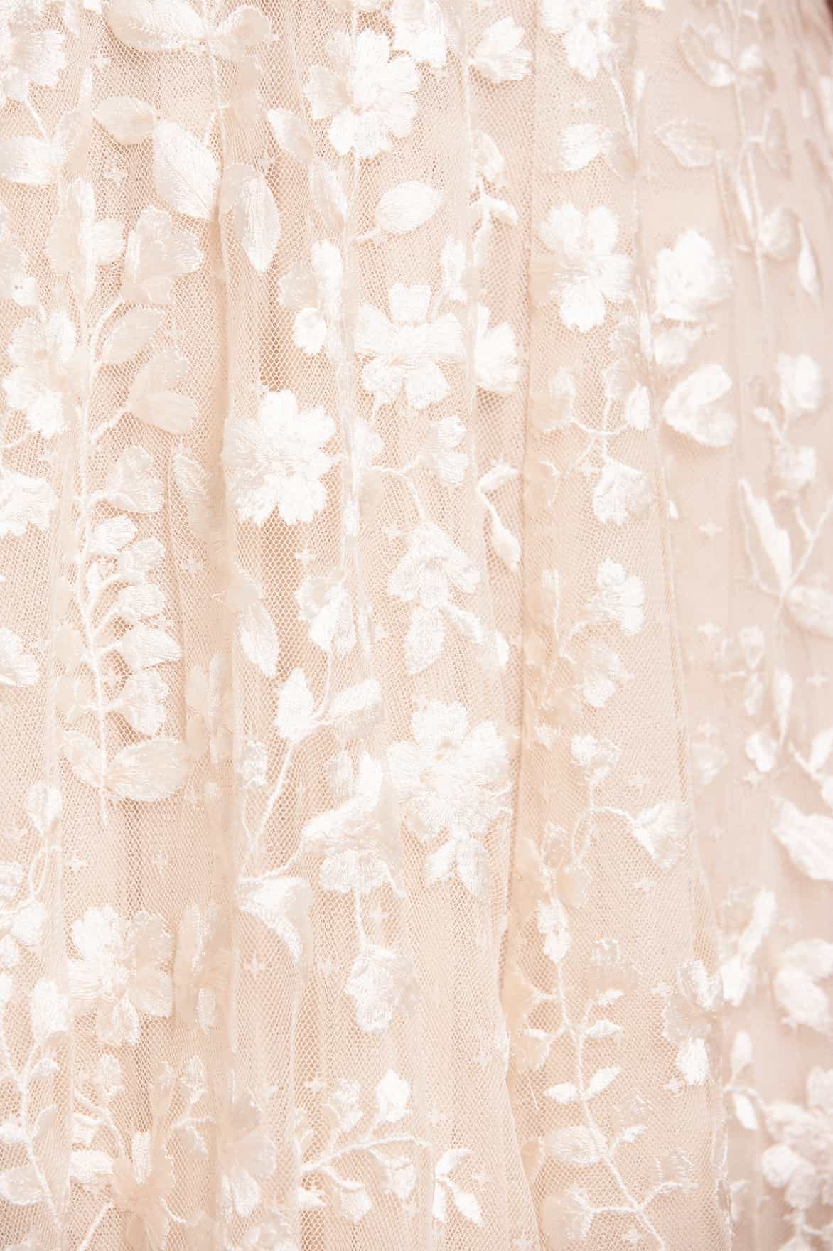 - Kisses tulle with layers of tulle ruffles and contrast embroidery
