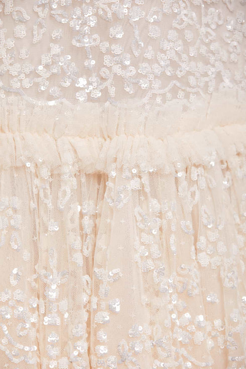 - A mixture of kisses tulle and plain tulle decorated with tonal sequins