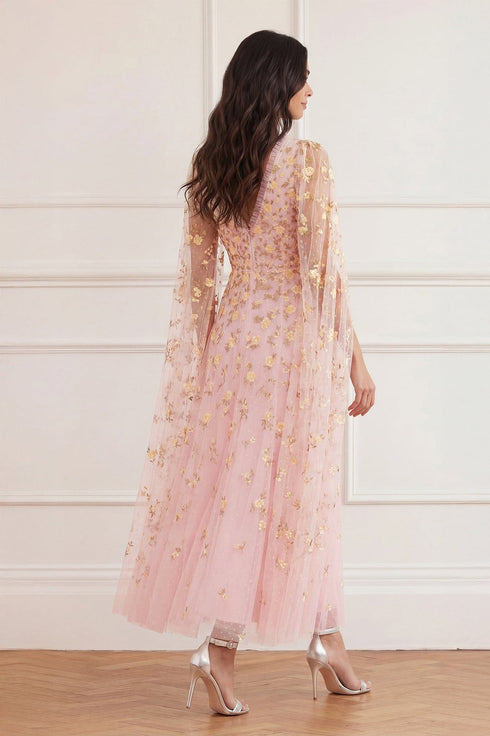 Lea Ditsy Cape Sleeve Ankle Gown