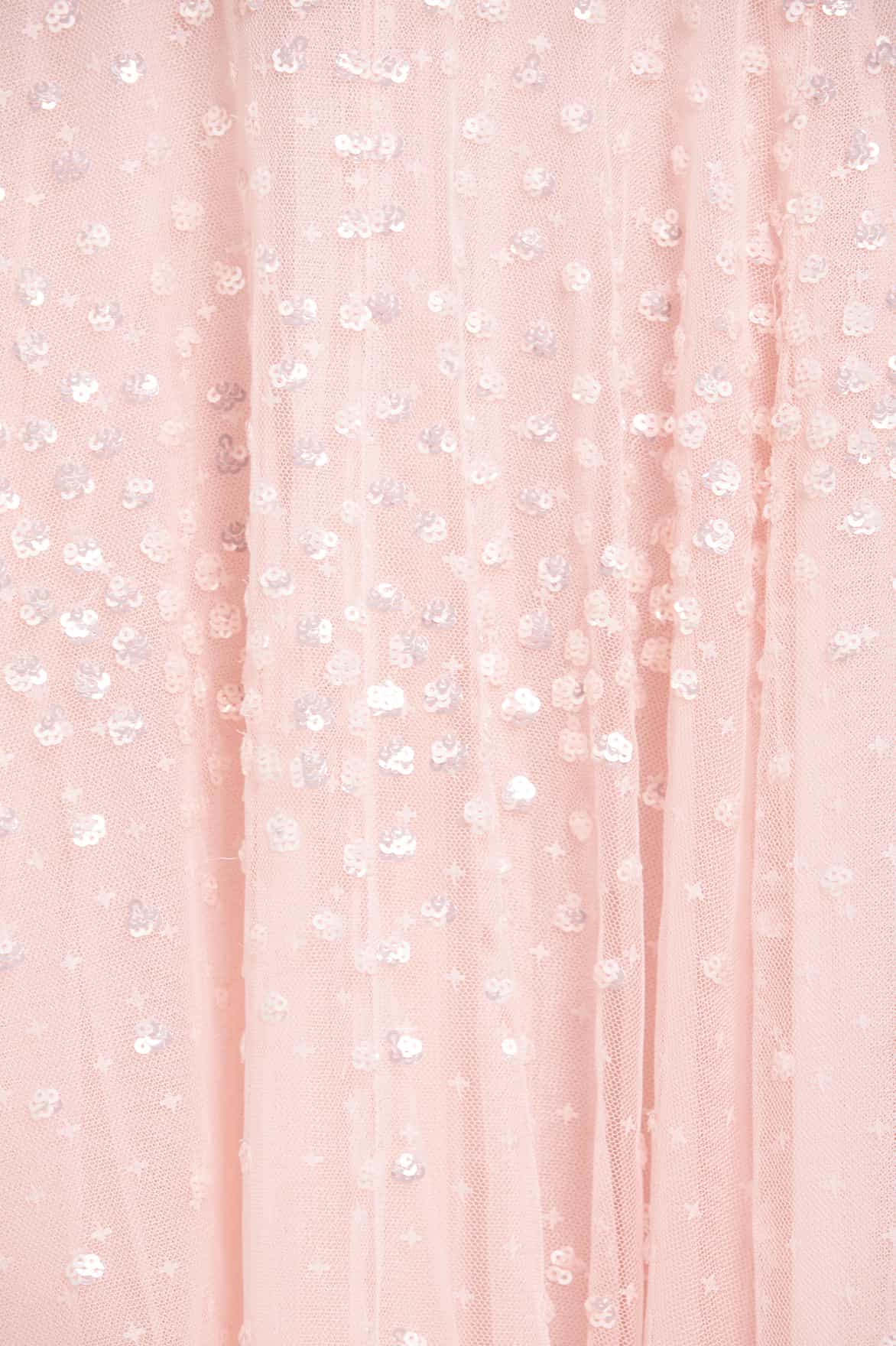 NEW SEASON. The Scallop Sequin V-Neck Ankle Gown in Seashell. Glistens with delicate sequin clusters inspired by art deco patterning. Its graceful cut and gentle flare create a timeless, romantic impression.