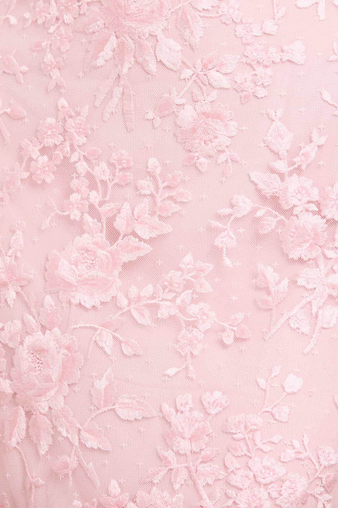 NEW SEASON. The Rosa V-Neck Cape Gown in Peony Pink. Adorned with delicate floral embroidery inspired by early 1900s artwork, this gown offers a refined, romantic silhouette. Finished with an integrated cape and a slim fit, enhanced by a bias-cut lining for fluid movement.