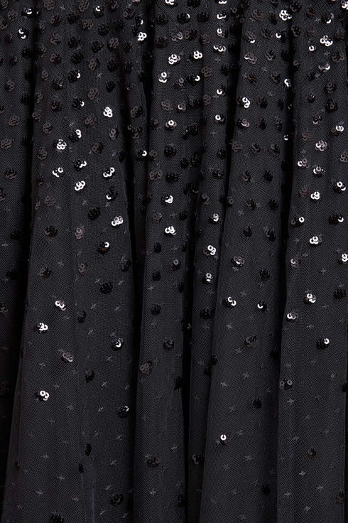 - Kisses tulle decorated with tonal sequins.