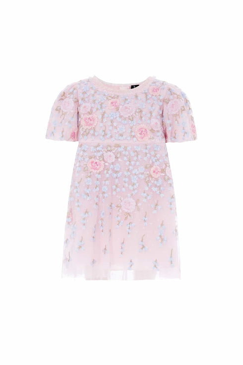 NEW SEASON. The Cressida Embroidery Baby Dress in Peony Pink/Multi. Features romantic floral embroidery inspired by garden blossoms. Designed with a soft tulle skirt and gentle volume, it brings comfort and elegance to baby’s wardrobe. This piece complements the Cressida Floral Ankle Gown from the womenswear line for a beautifully coordinated look.