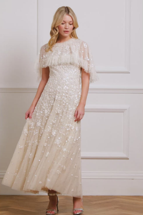 Dahlia Ditsy Short Cape Ankle Gown
