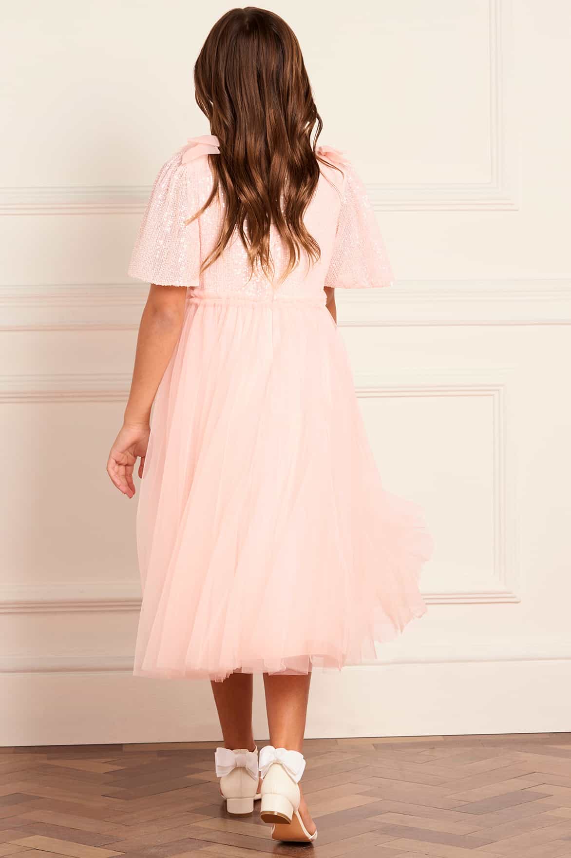 NEW SEASON. The Paloma Bow Kids Dress in Seashell. A charming design crafted in layers of soft tulle. Finished with a beautiful bow and a full skirt, it captures classic Needle & Thread femininity in miniature form.