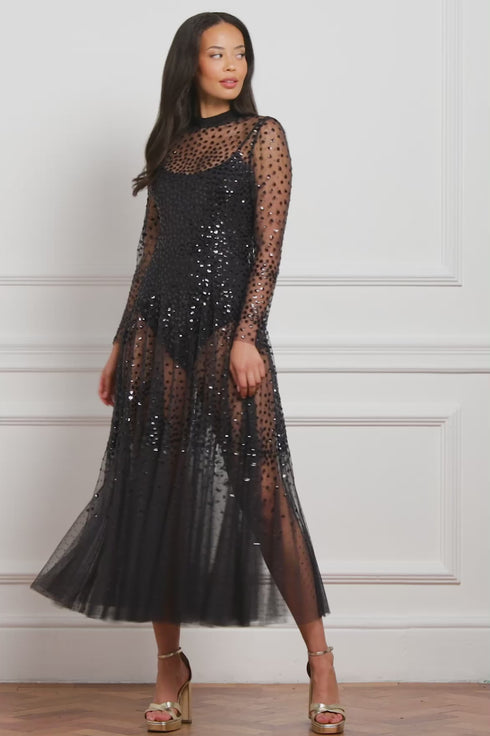 - Kisses tulle sheer dress decorated with tonal sequins.