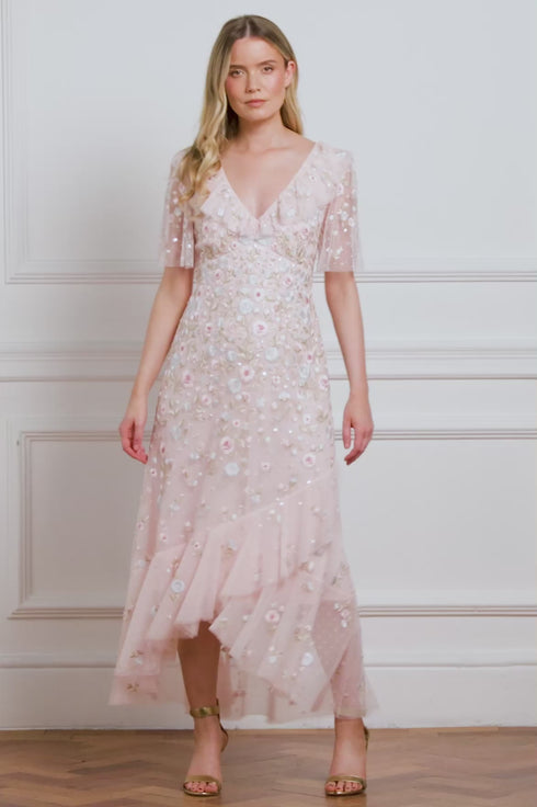 Ethereal Blooms Frill Ankle Gown