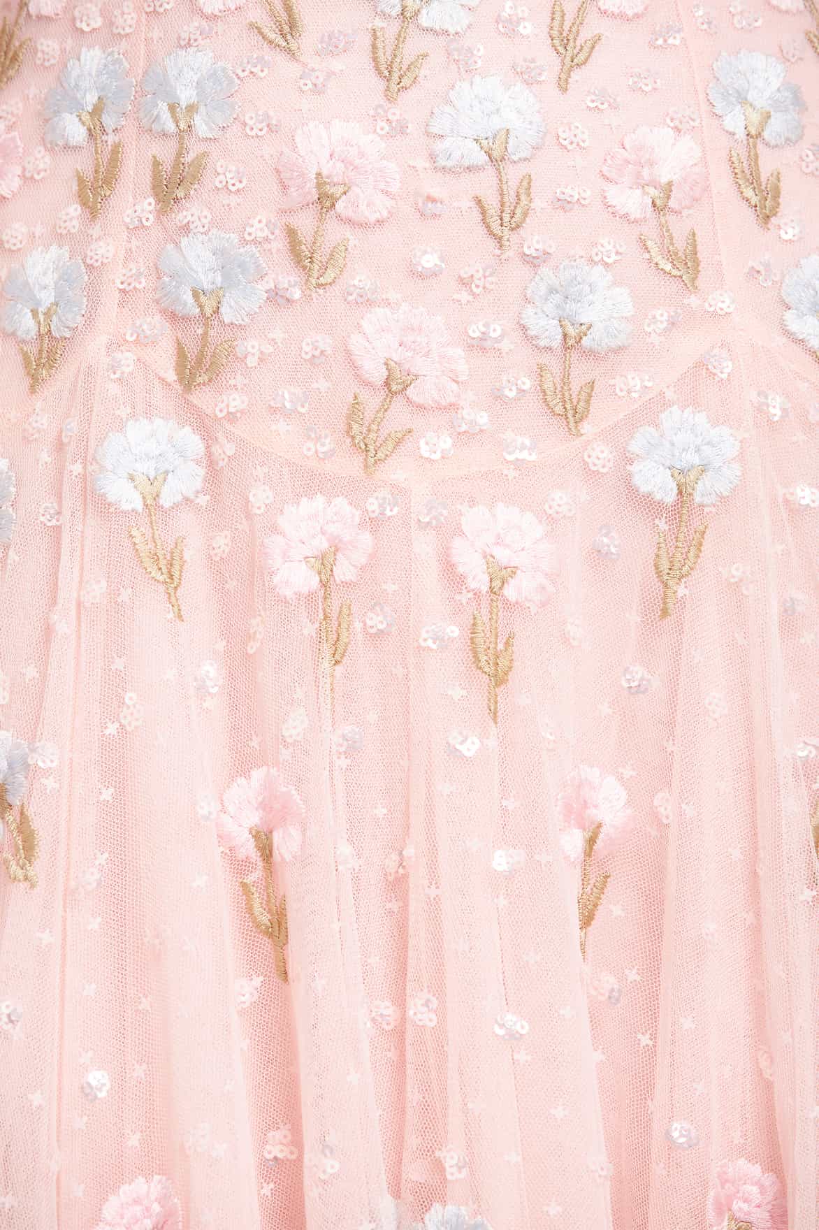 NEW SEASON. The Dandelion Ditsy Halter-Neck Micro Mini Dress in Seashell. Adorned with intricate embroidery and subtle shimmer. With its flattering halter neckline and playful mini length, this design brings a youthful, whimsical spirit to occasion dressing.