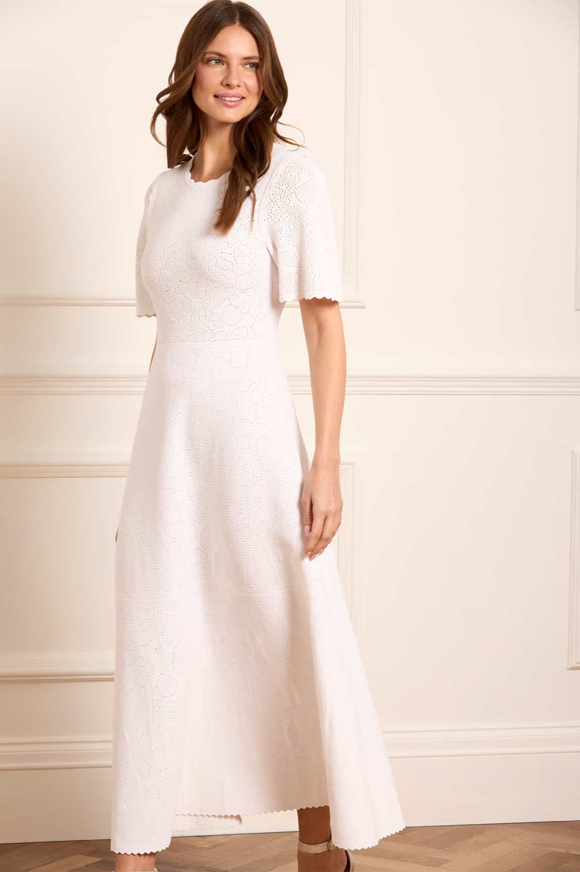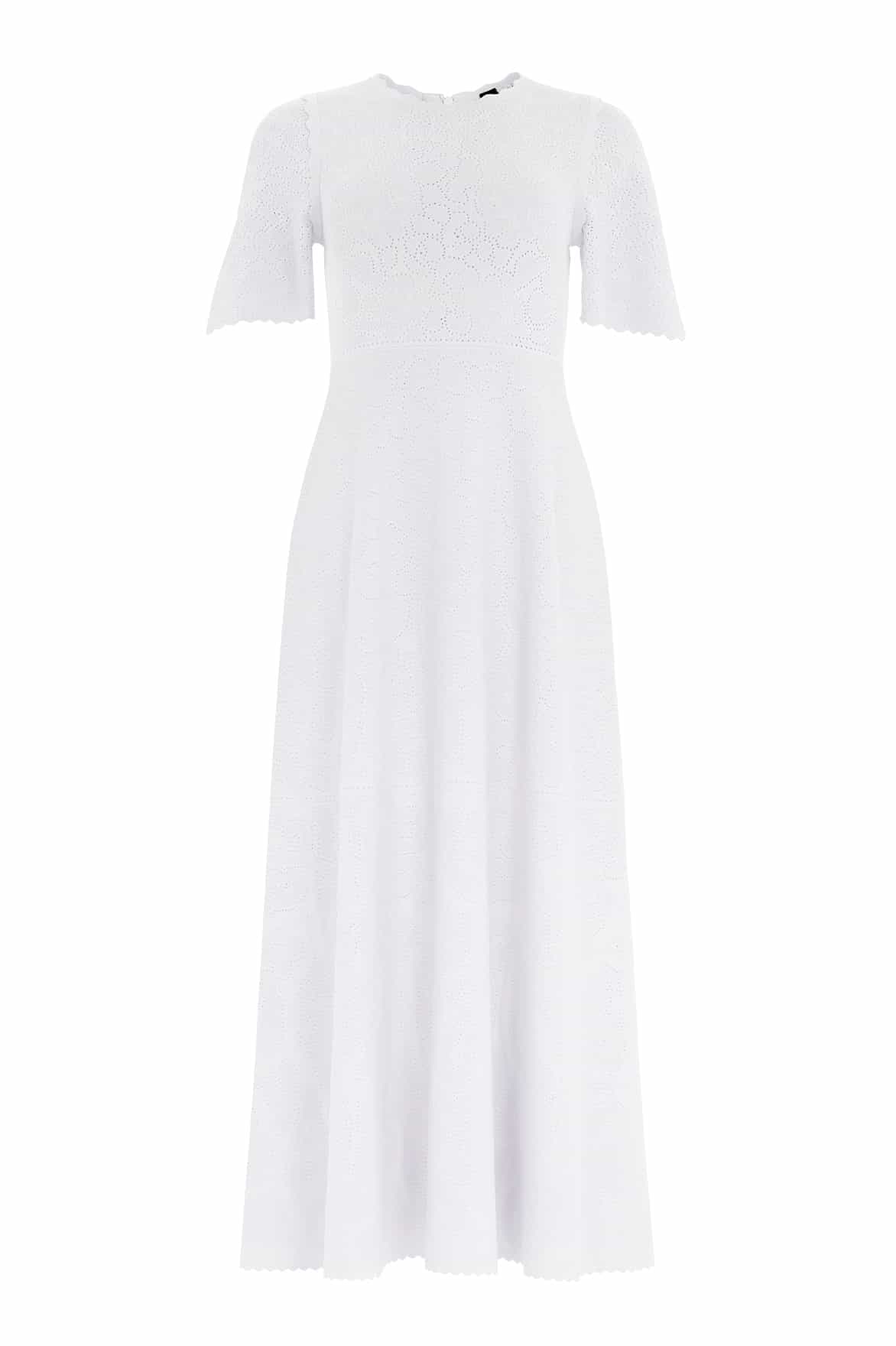 - Knitted stretch viscose dress with decorated floral pointelle detail