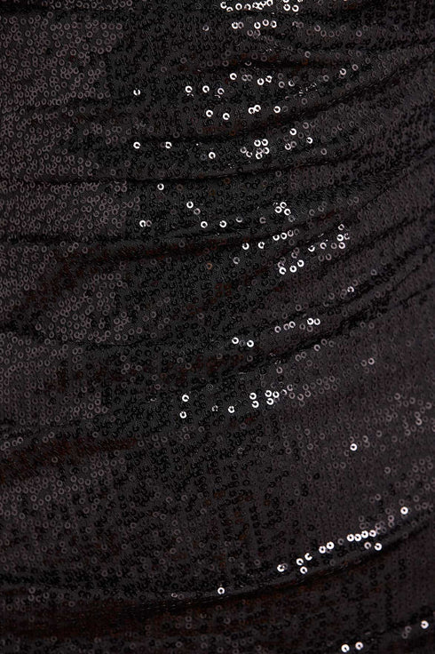 NEW SEASON. The Josephine Long Sleeve Micro Mini Dress in Graphite. Reimagining celestial glamour with youthful energy. This party piece is embellished with twinkling sequins like stardust, the slim silhouette is balanced by sheer powermesh sleeves. The mini length lends playful vibrancy, while the graphite tone grounds the design in Bright Star’s dramatic romance.