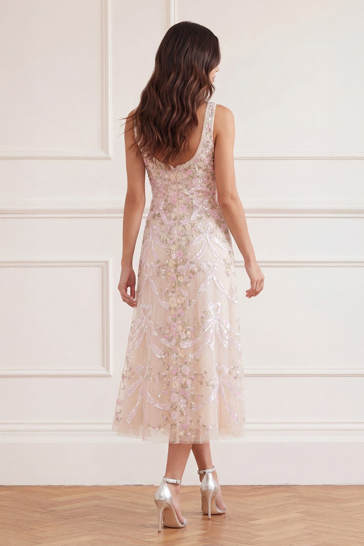 - Kisses tulle decorated with floral embroidery and contrast sequins