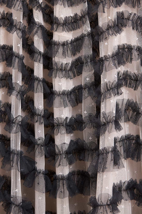 - Kisses tulle decorated with layers of kisses tulle ruffles.