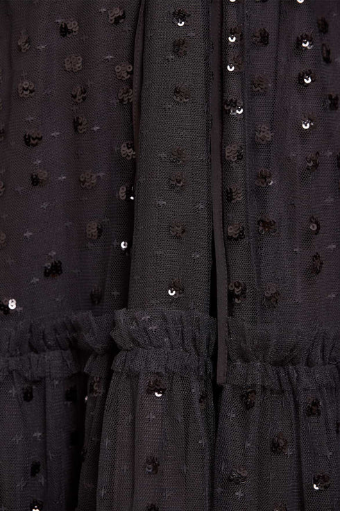 - Kisses tulle decorated with tonal sequins and tulle ruffles