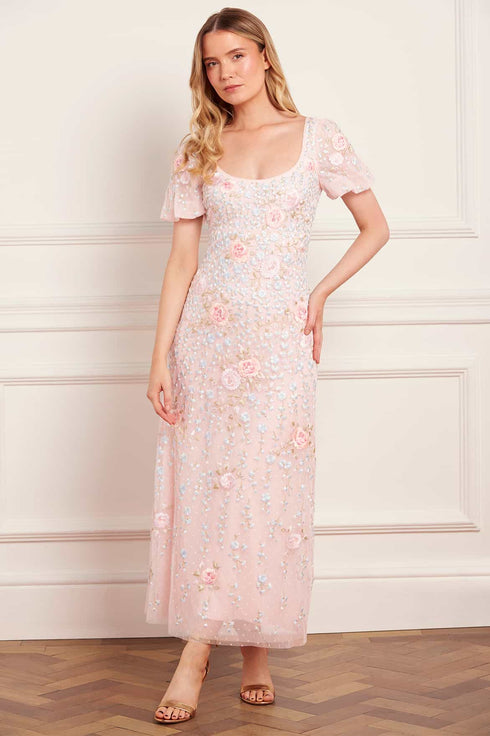 Cressida Embroidery Puff Sleeve Ankle Gown