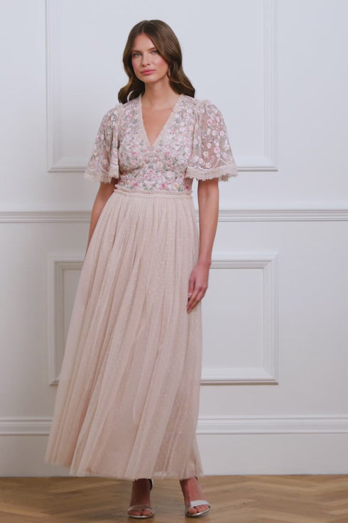 Rosie Lace Bodice Short Sleeve V-Neck Ankle Gown