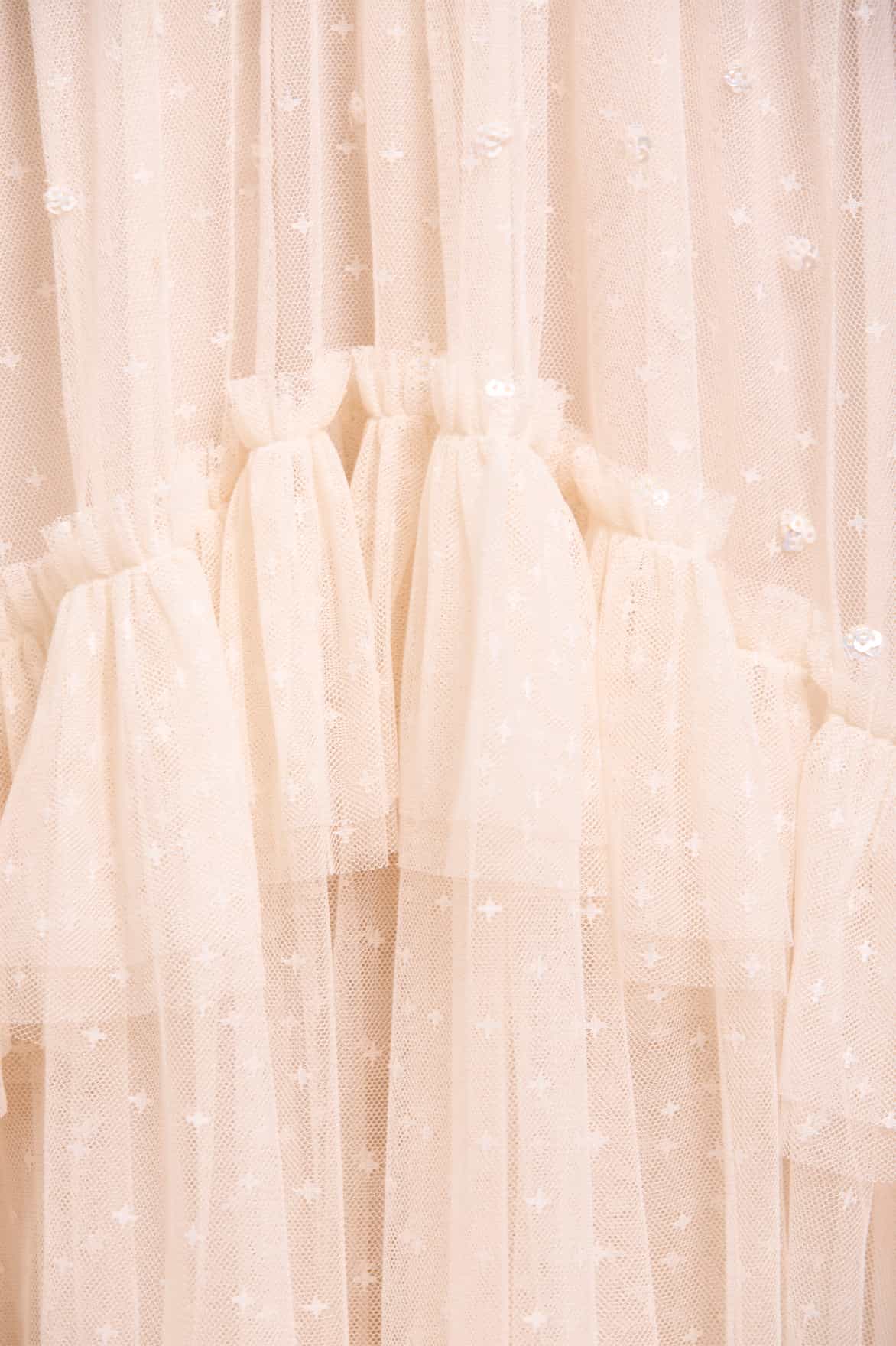 - Kisses tulle decorated with tonal sequins.