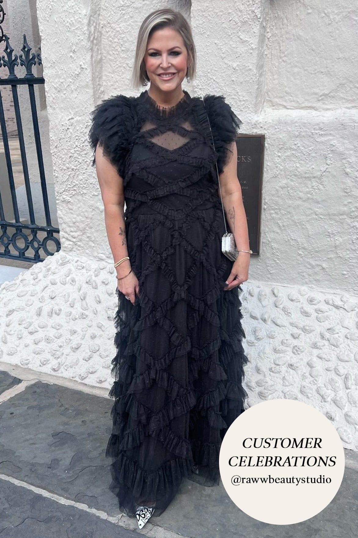 NEEDLE & THREAD EXCLUSIVE. The Genevieve Rose Gown in Graphite. This statement gown is inspired by 1930s Hollywood glamour. Beautifully designed with diamond tulle details and trims. Crafted with multiple layers of ruffled, frothy tulle sculpted for dramatic effect. Make the ultimate style statement this season.