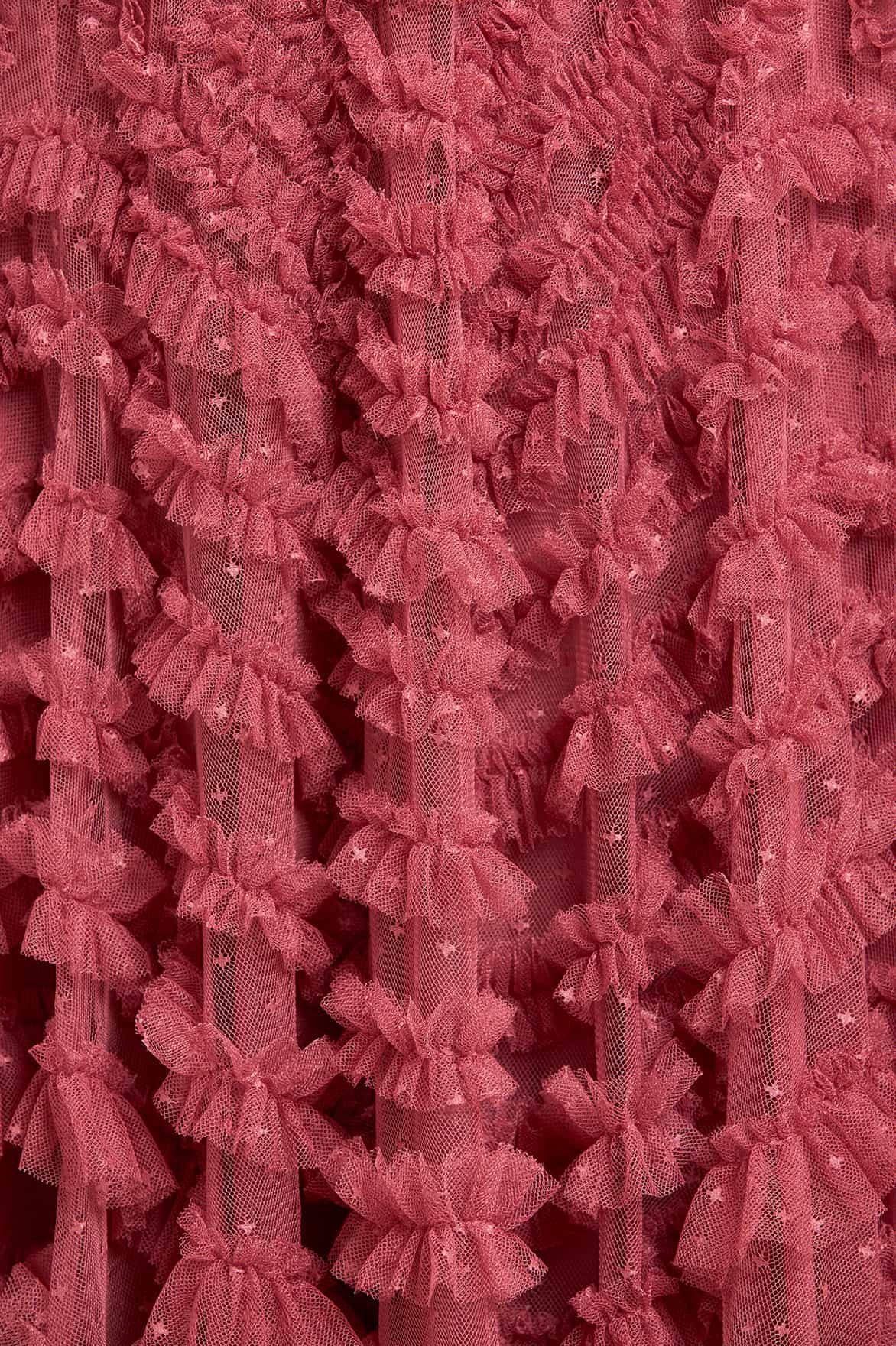 - Kisses tulle decorated with layers of kisses tulle ruffles.