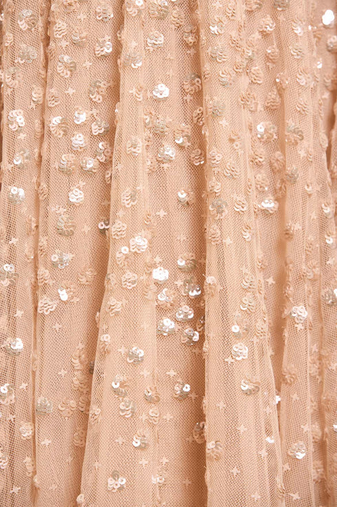 - Kisses tulle decorated with tonal sequins.