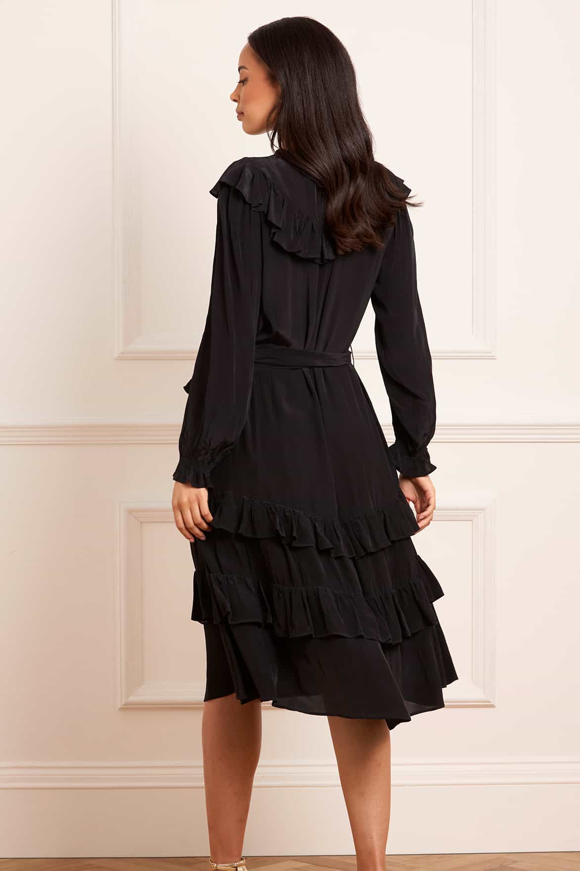 NEW SEASON | NEEDLE & THREAD EXCLUSIVE. The Joelle Crepe Midaxi Dress in Graphite. A clean and structured piece designed in a soft crepe with a defined waist, midaxi hemline and slight volume through the sleeves. This dress balances minimalism with polish.