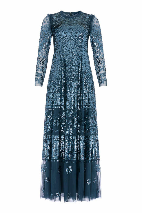NEW SEASON. The Aurora Gown in Teal Blue. An elegant expression of modern femininity. Crafted from delicate tulle with a flattering, softly structured shape, this gown moves beautifully, combining colour depth and lightness for a refined evening look.