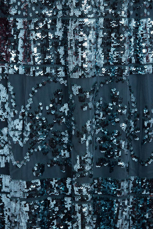 - 100% of the sequins used for this design are made from upcycled materials using self-generated plastic waste.
