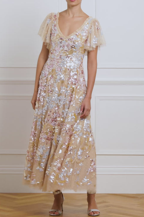 - 100% of the sequins used for this design are made from upcycled materials using self-generated plastic waste.