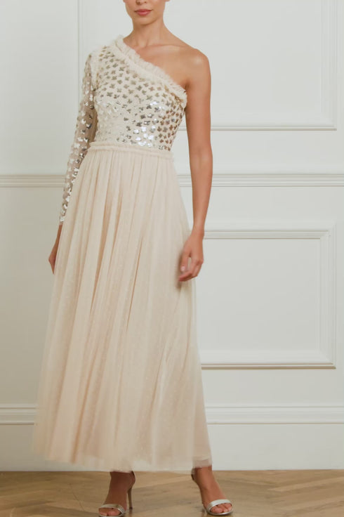 Glisten Bodice One-Shoulder Ankle Gown