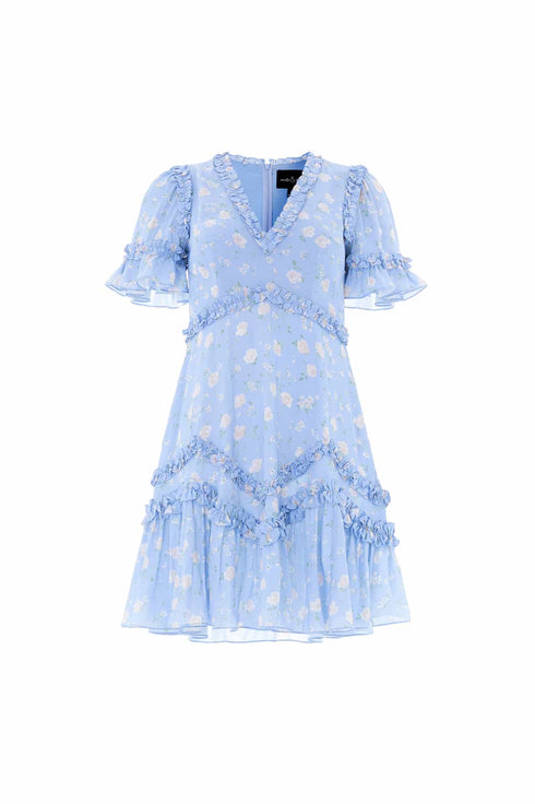 Semi-fitted through the bust with a relaxed fit through the waist. Full multi-layered skirt.