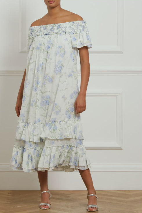 Summer Posy Cotton Off-Shoulder Ankle Gown